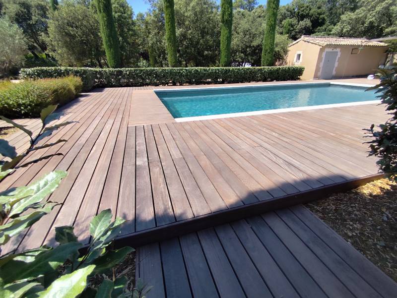 Avec ce projet à Eygalières, Cosybois confirme son savoir-faire unique dans la pose de terrasses en bois exotique sur-mesure.
